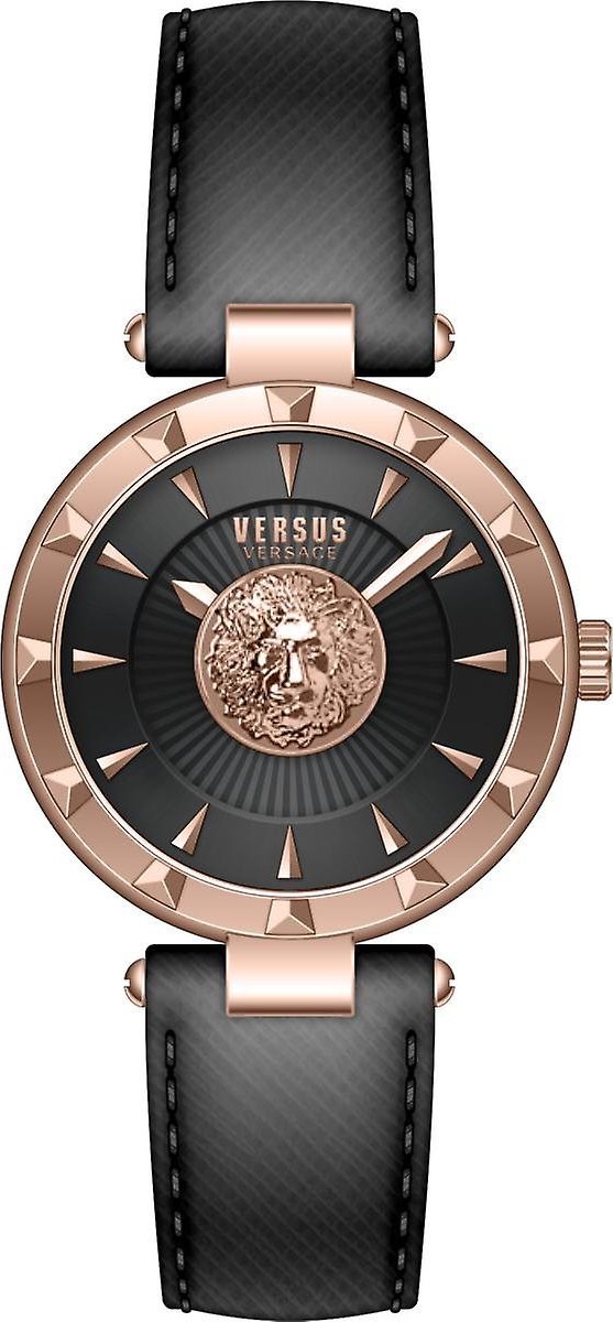 Màu sắc: đen với đầu sư tử 3D Vỏ: Vỏ thép không gỉ vàng hồng, vành vàng hồng, đường kính khoảng 36 mm, chiều cao: khoảng 11,5 mm Mặt sau vỏ: Thép không gỉ có logo. Dây đeo: Dây da màu đen. Chiều rộng: khoảng 1,8 cm Chiều dài đồng hồ: khoảng 18,5 cm. Khóa chốt Độ kín: Chống nước 3 ATM (30 m) Chức năng / Hiển thị: Kính khoáng chống xước, bộ máy thạch anh chạy bằng pin Giờ - phút. Dành cho: nữ. Màu sắc: vàng hồng.
