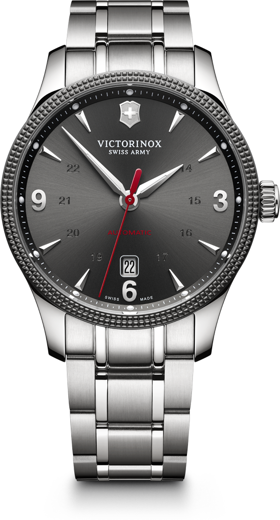Sự kết hợp giữa các dòng cổ điển và tinh tế, tập trung vào các nguyên tắc cơ bản: biểu đồ thời gian kết hợp với sự tinh tế của cơ chế chế tạo đồng hồ Swiss Made. Alliance Mechanical quay trở lại những điều cơ bản và tập trung vào chức năng chính của nó: hiển thị thời gian rõ ràng và chính xác nhất có thể. Giống như một chữ ký, kim giây có màu đỏ Victorinox nổi tiếng, cũng như dòng chữ “Automatic” trên mặt số.
