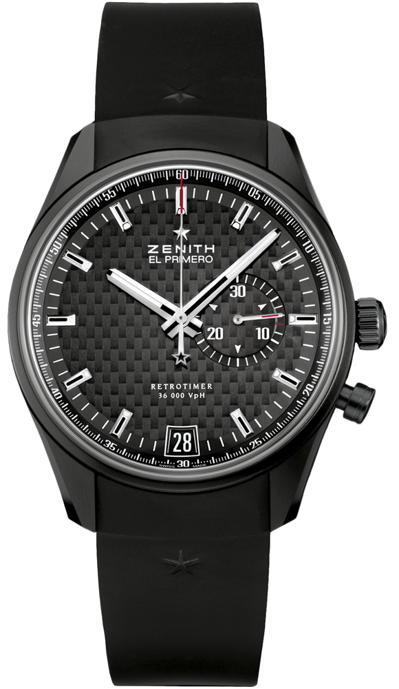 - Kim đếm giây bằng thép đánh bóng lớn (với logo ngôi sao Zenith làm đối trọng).