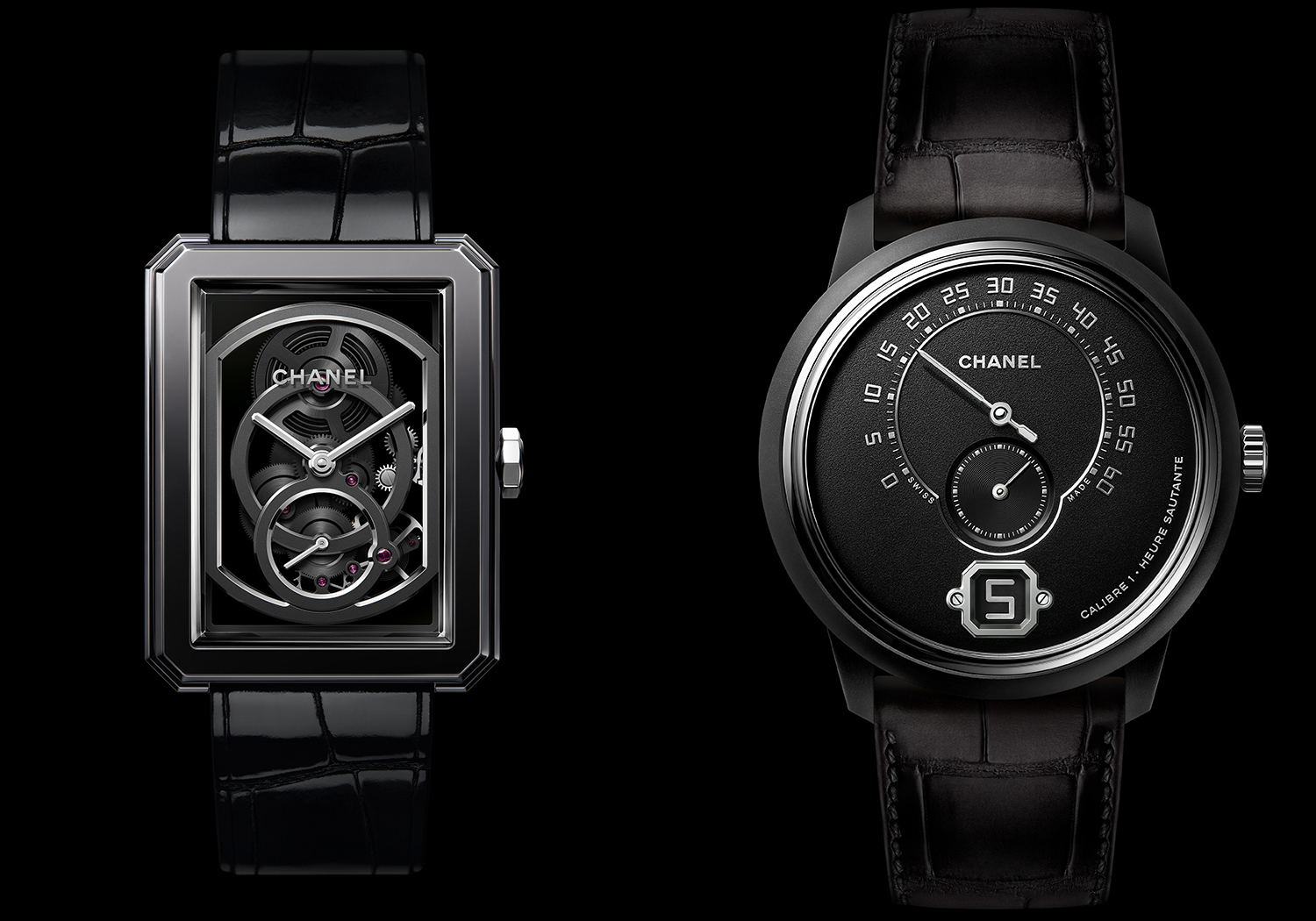 Về mặt nghệ thuật, Monsieur De Chanel là sự lựa chọn đầu tiên cho bộ sưu tập, với lớp vỏ được chế tác bằng gốm màu đen 42mm, bên trong bộ chuyển động nội bộ lên dây cót bằng tay Caliber 1 điều khiển đồng hồ nhảy giờ ngay lập tức tại cửa sổ giờ ở điểm 6 giờ, đồng thời kim phút và giây sẽ luôn hoạt động tại hai mặt số cách biệt. Với phiên bản màu đen của Monsieur De Chanel, chỉ có 55 chiếc được sản xuất.