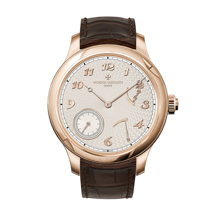 Bộ lặp phút (Minute Repeater) mà bạn nhìn thấy dưới đây được trình bày trong một đường lối thiết kế cổ điển tiêu chuẩn, chiếc đồng hồ Vacheron Constantin này sở hữu vỏ máy bằng rose-gold với mặt số tráng men có kích thước lớn, thêm vào đó là một thang đo trong phong cách railroad phối hợp cùng các chữ số Ả Rập lớn.