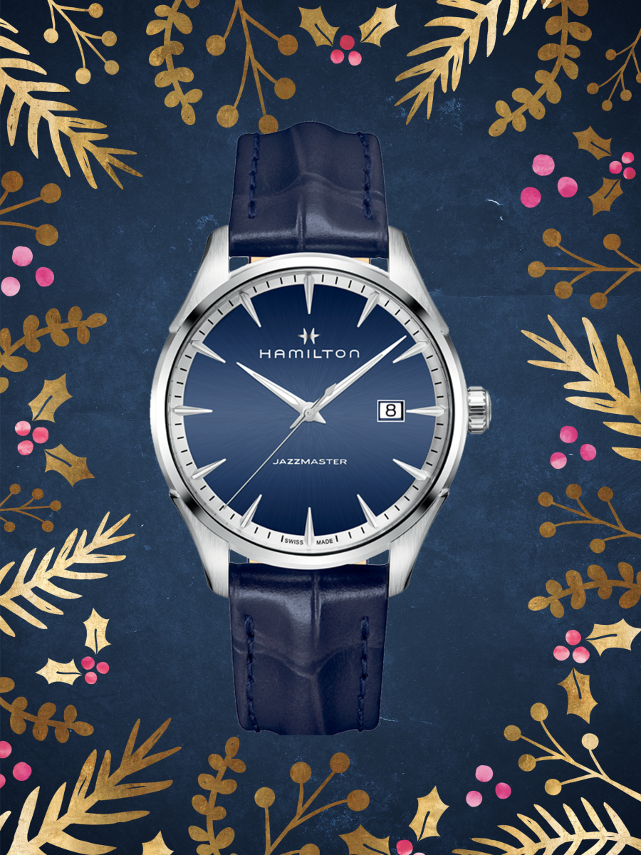 HAMILTON JAZZMASTER BLUE LEATHER WATCH 40MM