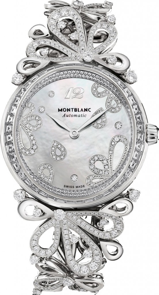 Đồng hồ Montblanc Petales de Rose Motif làm từ vàng trắng và có đính kim cương, đường kính 34 mm và dày 10 mm. Mặt sau đồng hồ có khắc chữ Princess Grace lồng vào nhau. Chiếc đồng hồ này trị giá 241.200 USD.