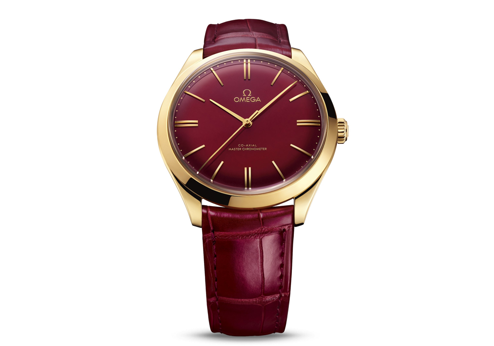 Lớp men màu đỏ rực được chế tác bằng tay trên mặt số hình vòm, cũng như các chỉ số và kim bằng vàng tạo nên sự mê hoặc rực rỡ. Omega đã đánh dấu kỷ niệm 125 năm cái tên với một huy chương vàng gold 18k đặc biệt được bao quanh bởi men màu đỏ ở sau nắp lưng. Bao quanh huy chương là họa tiết khắc trang trí với tên gọi "damaskeening" - mô hình trang trí tương tự được sử dụng trên Omega Calibre đã được tân trang mới.