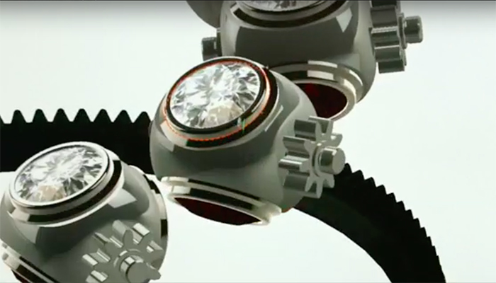 Nếu mở chiếc đồng hồ Fendi Timepieces Crazy Carats và kiểm tra các điểm đánh dấu giờ, bạn sẽ phát hiện thấy ở mỗi điểm đánh dấu giờ khác nhau sẽ có - viên kim cương và hai viên đá quý đầy màu sắc, chúng được đặt xung quanh một hình cầu (gale), bị giới hạn ở bên cạnh của một bánh răng thoát. Các bánh răng này (và các điểm đánh dấu ba mặt của chúng) dược đặt bằng tay và được đặt cánh đều nhau xung quanh một bánh xe có rãnh, ẩn bên dưới khung bezel của đồng hồ. Khi chúng ta xoay núm điều chỉnh của Fendi Timepiece, đồng nghĩa chúng ta đang quay bánh xe có rãnh này, lần lượt bánh xe này quay tròn tại các điểm đánh dấu hình cầu và kim cương lẫn đá quý sẽ thay phiên nhau trồi lên, làm thay đổi màu sắc của chúng.