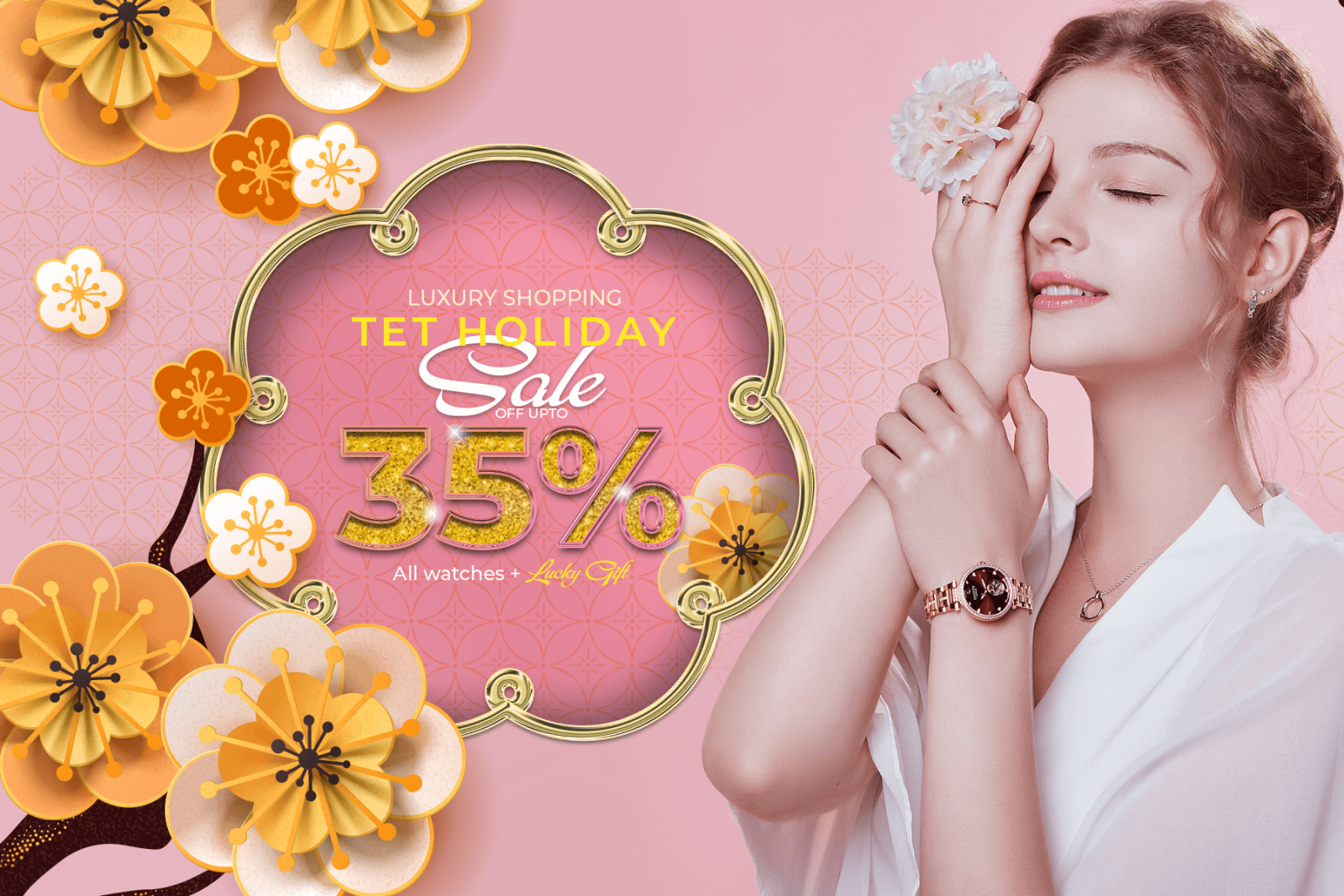 Thấu hiểu và mong muốn mang lại cho bạn một cái Tết thật vui vẻ và tràn đầy niềm vui, Luxury Shopping cứ mỗi dịp Tết đến Xuân về sẽ tri ân khách hàng với chương trình khuyến mãi lớn nhằm mục đích giúp quý khách có cơ hội tiếp cận chiếc đồng hồ mà bạn hằng mơ ước dễ dàng nhất để diện vào dịp Tết năm nay hoặc đơn giản là cơ hội để trao tặng người thân món quà nhỏ vào dịp năm mới. Mùa Tết nay, Luxury Shopping gói gọn yêu thương của mùa xuân Canh Tý vào chương trình mang tên "YEAR OF THE RAT 2020 - SALE MAX UP TO 35%" cho toàn bộ sản phẩm đồng hồ.